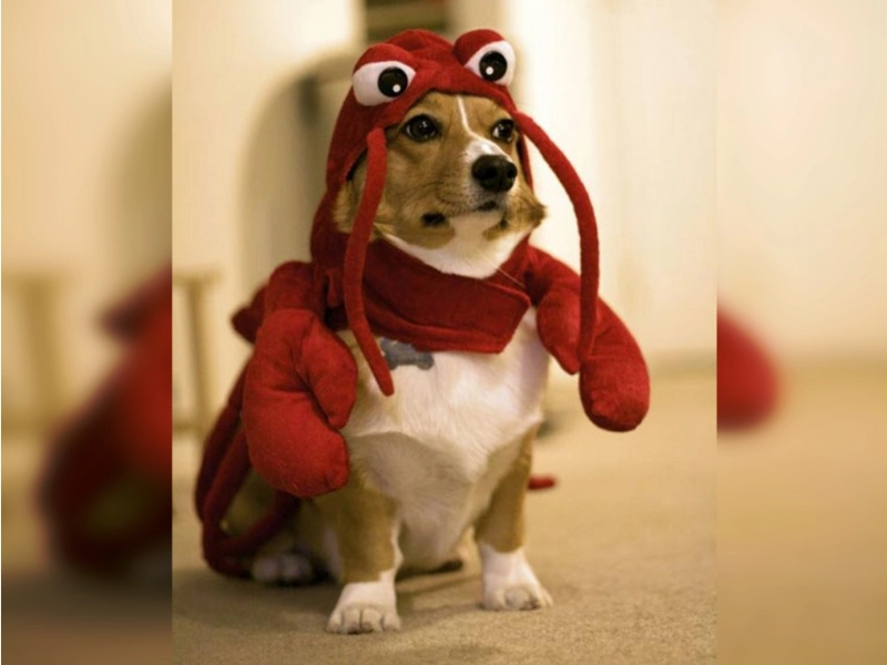 Das Hummerkostüm sitzt fantastisch und unterstreicht seine einzigartige Persönlichkeit perfekt.