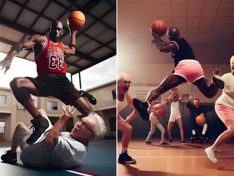Urheber: Hoodad Mehrbod. Midjourney war die vermutlich verwendete App. Dank seiner lukrativen Werbeverträge mit Nike und anderen Unternehmen hat Michael Jordan, einer der größten Sportler aller Zeiten, ein Milliardenvermögen angehäuft.