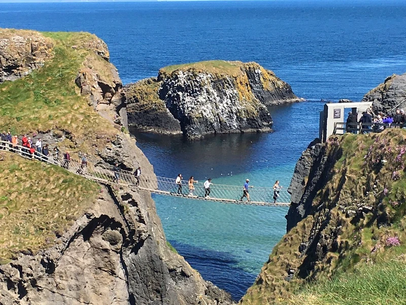 揺れる細い吊り橋に渡る北大西洋の小さな島は誰もが楽しめるとは限らないかもしれませんが、北アイルランドのキャリック ア リード ロープ ブリッジには毎年何千人もの観光客が訪れます。 350年前に鮭漁師が橋を架けた島に唯一残る漁小屋。それは国によって北アイルランドの最も人気のある観光名所の 1 つとして記載されています。nal Trust、および ped安全上の理由から、エストリア人は一度に 8 人までに制限されています。