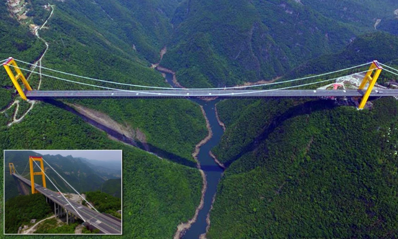 それが山頂を結ぶシドゥ川橋梁です。現在開催中世界で最も高い/最も高い橋題名、中国のそびえ立つ橋のすべてが常にタイトルをめぐって互いに挑戦しているにもかかわらず. 岩が多い山岳地帯の景観にもかかわらず、橋は高速道路の拡張への影響を気にしません。 橋を渡ると、5,000 フィートの区間があり、山の上 1,600 フィート、シドゥ リバー バレーの上に立っています。それはほとんどcではありません快適なブリッジですが、しっかりと強化されており、まるで飛んでいるような気分になります。