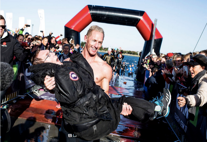 この男性はゴールラインで、障害のある双子の弟をアイアンマンで引っ張ったり、押したり、持ち上げたりしました。