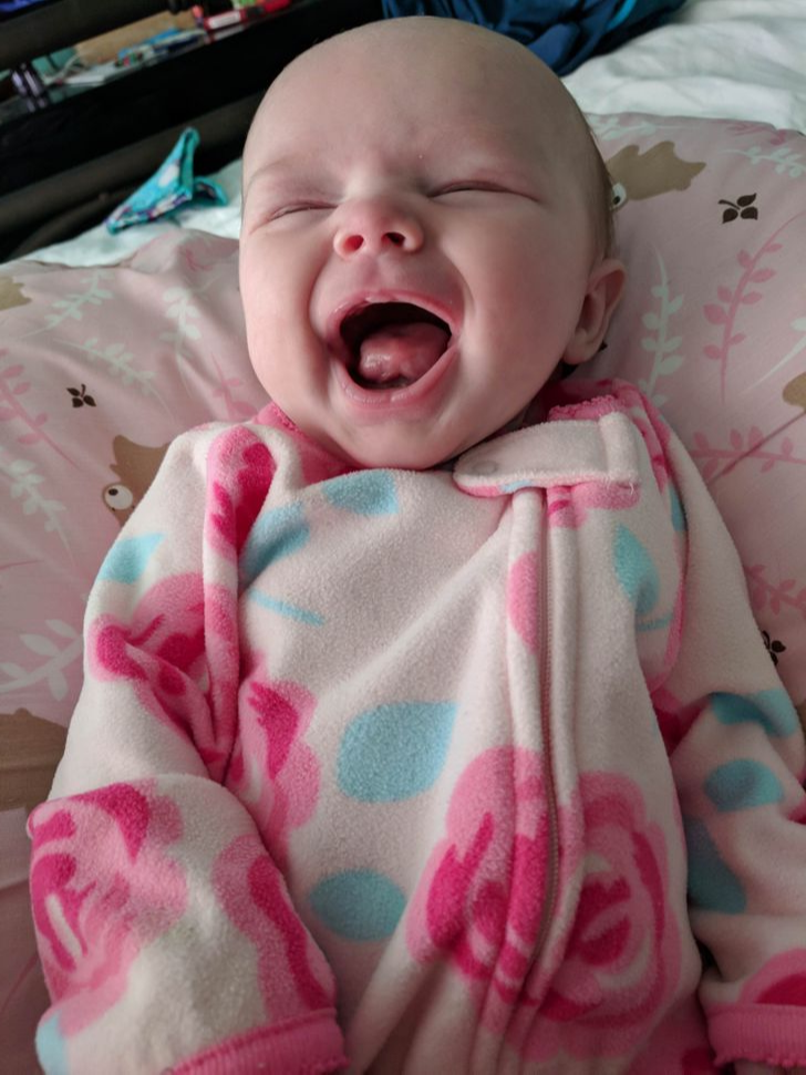 「生後2か月の娘は昨夜8.5時間寝ました。これは今朝撮った写真です。それは私の気持ちの反映でもあります。」