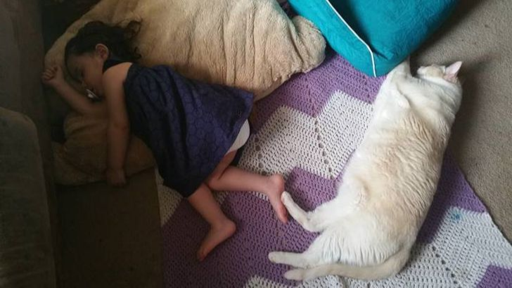 「娘と猫は昼寝するときはいつも触れ合っていなければなりません。」