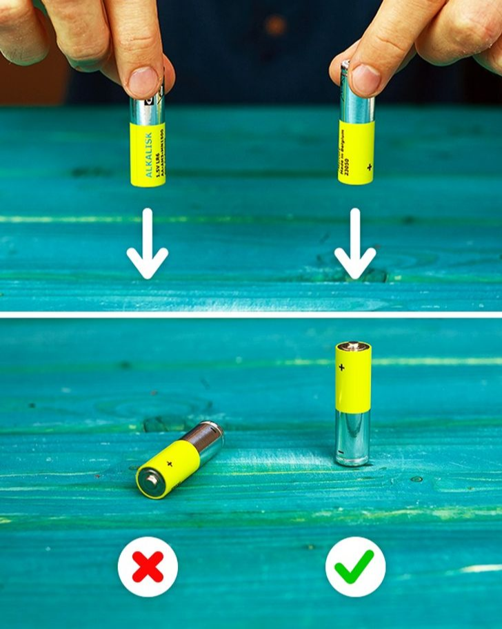 正常なバッテリーと欠陥のあるバッテリーは簡単に区別できます。2 つのバッテリーは、落下する前にテーブルから 1 ~ 2 cm 持ち上げる必要があります。落ちたり跳ねたりすると電池が消耗します。